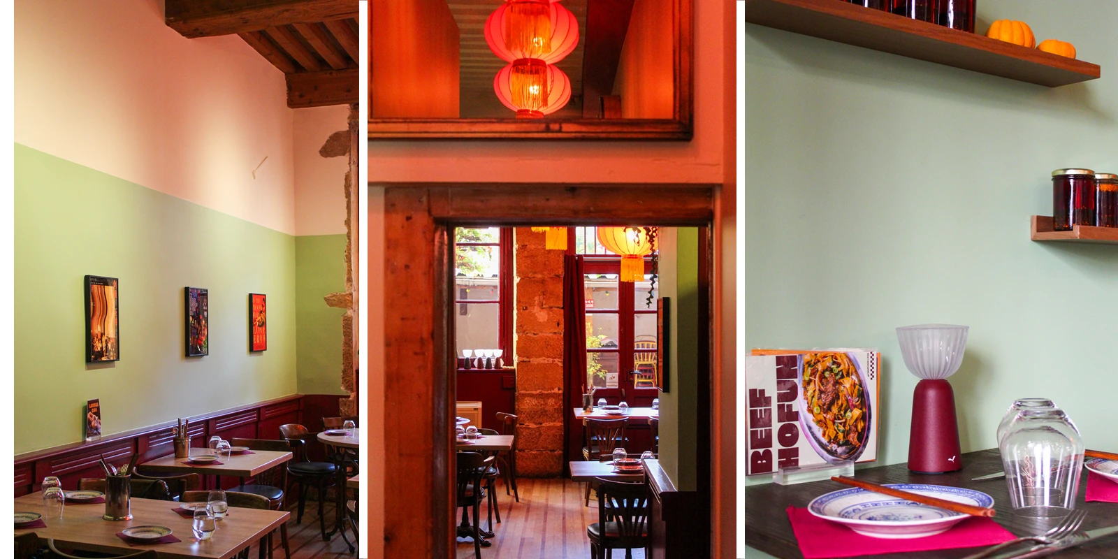 Chop Chop s’intègre naturellement à l’esprit de la Croix-Rousse : authentique, vivant et accueillant. La décoration conserve plusieurs éléments d’origine — plafonds, mobilier et détails typiques de l’architecture croix-roussienne — auxquels s’ajoutent des touches asiatiques subtiles. L’ensemble crée une atmosphère à la fois dépaysante et familière.