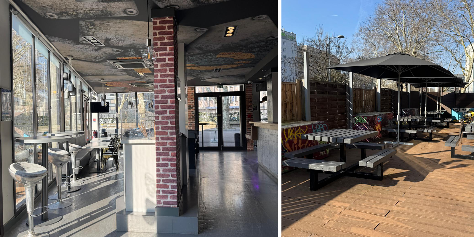 Le nouveau gérant, tout en respectant l’histoire du lieu, a voulu y apporter sa touche personnelle. Il a opté pour une ambiance industrielle, alliant chaleur et convivialité. L’OXXO peut accueillir 50 couverts en intérieur et 30 en terrasse, offrant ainsi une capacité adaptée à toutes les envies, du déjeuner en semaine aux soirées animées entre amis.